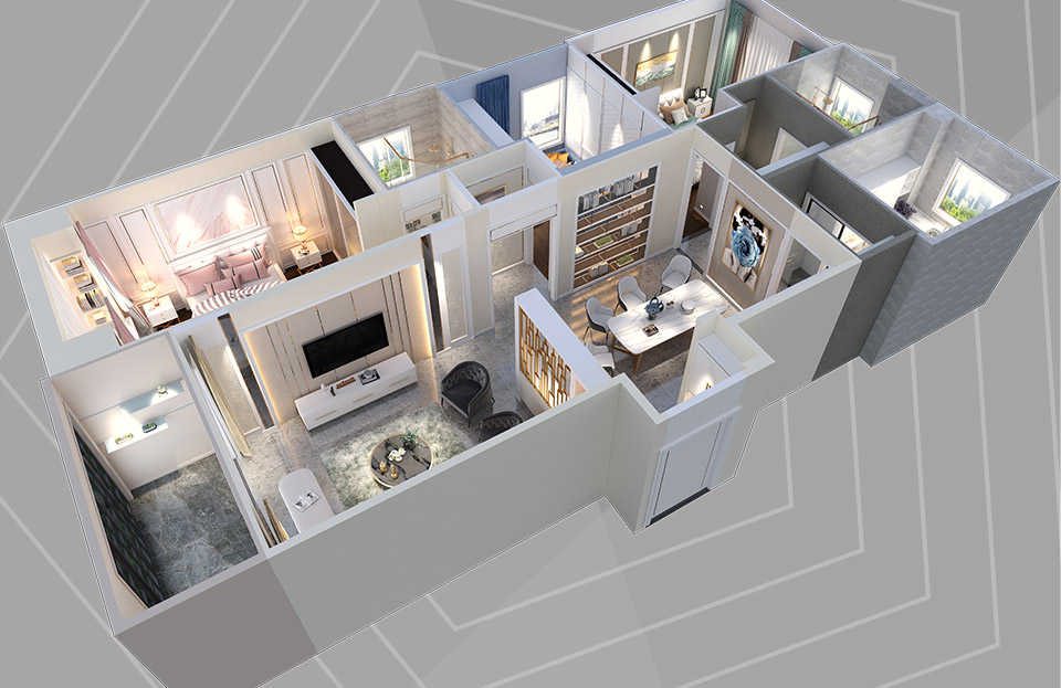 300平意式大宅全屋煥活新思路:懸浮電視背景隔而不斷,巧設格局開闊空間!……